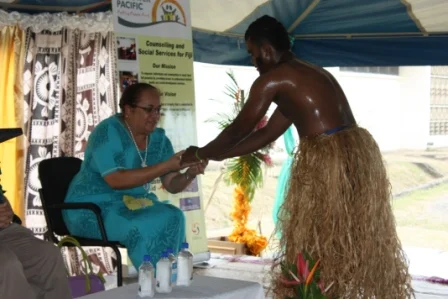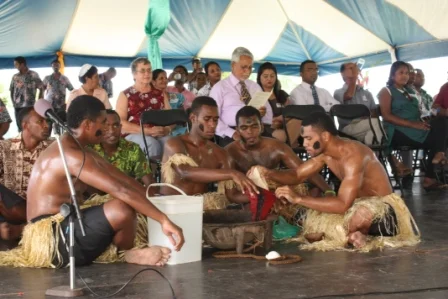 The Chief Guest Mr Glenn Miles receives the i-sevusevu